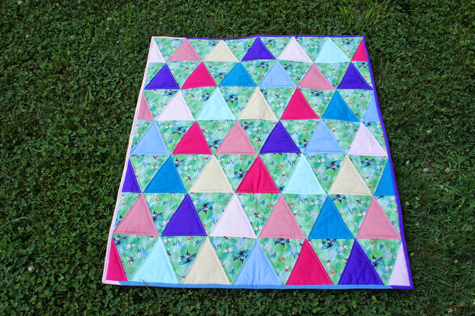 I am usually a hoarder. I keep EVERY. TINY PIECE. because I am sure that I will be able to use it in something. But sometimes fabric is passed on to me by sweet friends who know I can't turn away free fabric. When I know that it is just not my style, I turn it into a comfort quilt for some sweet little one in need. This next quilt is a perfect example. Someone had passed on about a yard of this butterfly fabric to me, sweet but now my style.